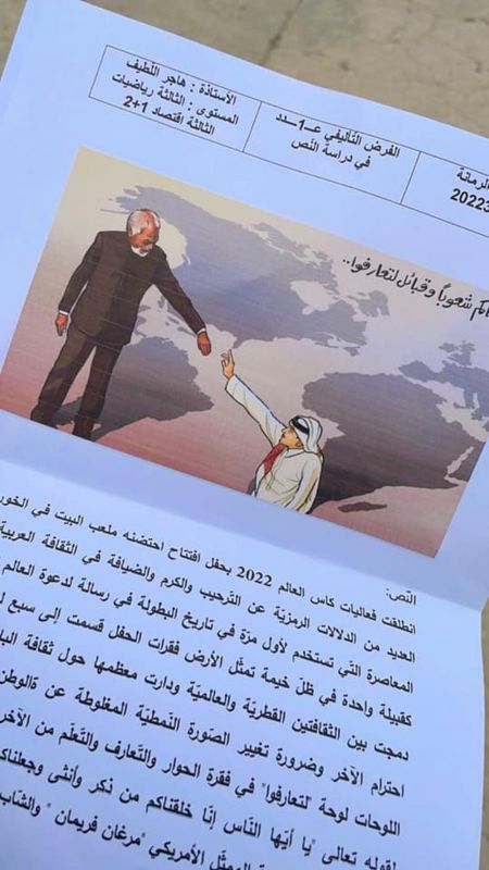 اختار بعض أساتذة التعليم الثانوي ادراج بعض المواضيع التي تناولت الحدث الكروي العالمي مونديال قطر 2022 بنصوص الامتحانات، وذلك من خلال بعده الانساني، وفق ما نشرته الصفحة المتخصصة بأخبار التعليم الثانوي "ليسينا" على فيسبوك.