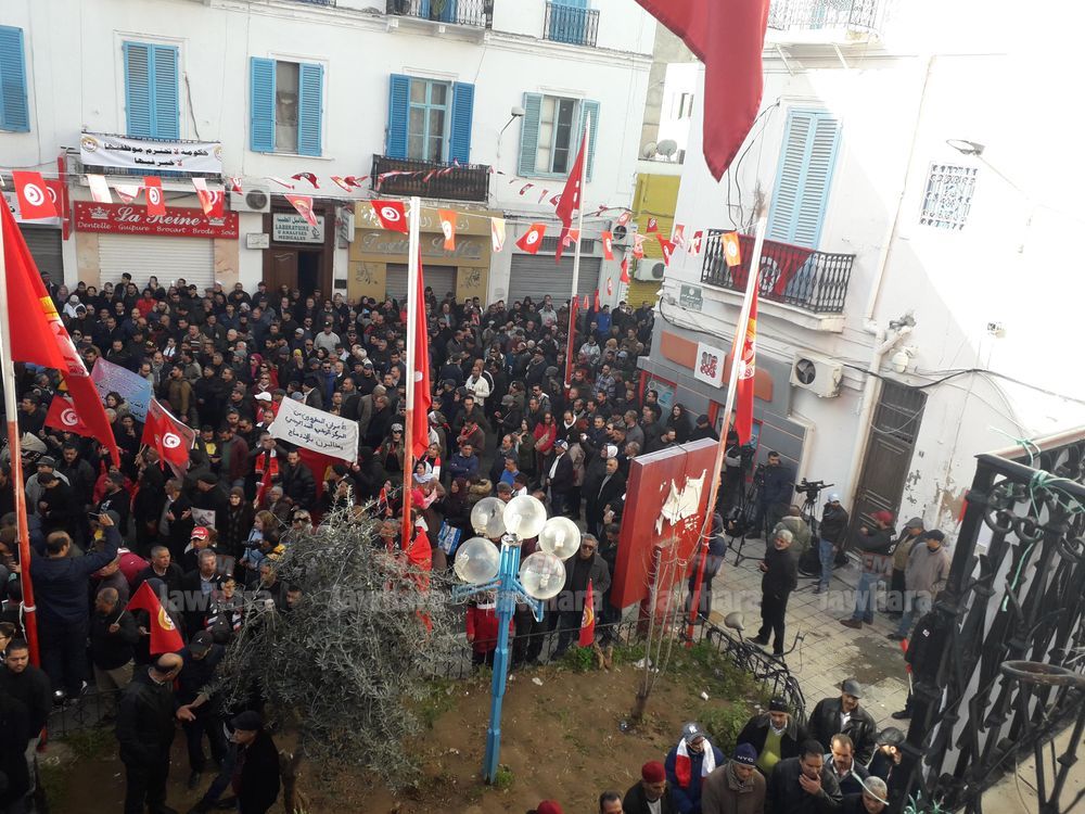 أما على مستوى الولايات، فسيتم تنظيم تجمعات عمالية أمام المقرات الجهوية لاتحاد الشغل بكل الجهات.