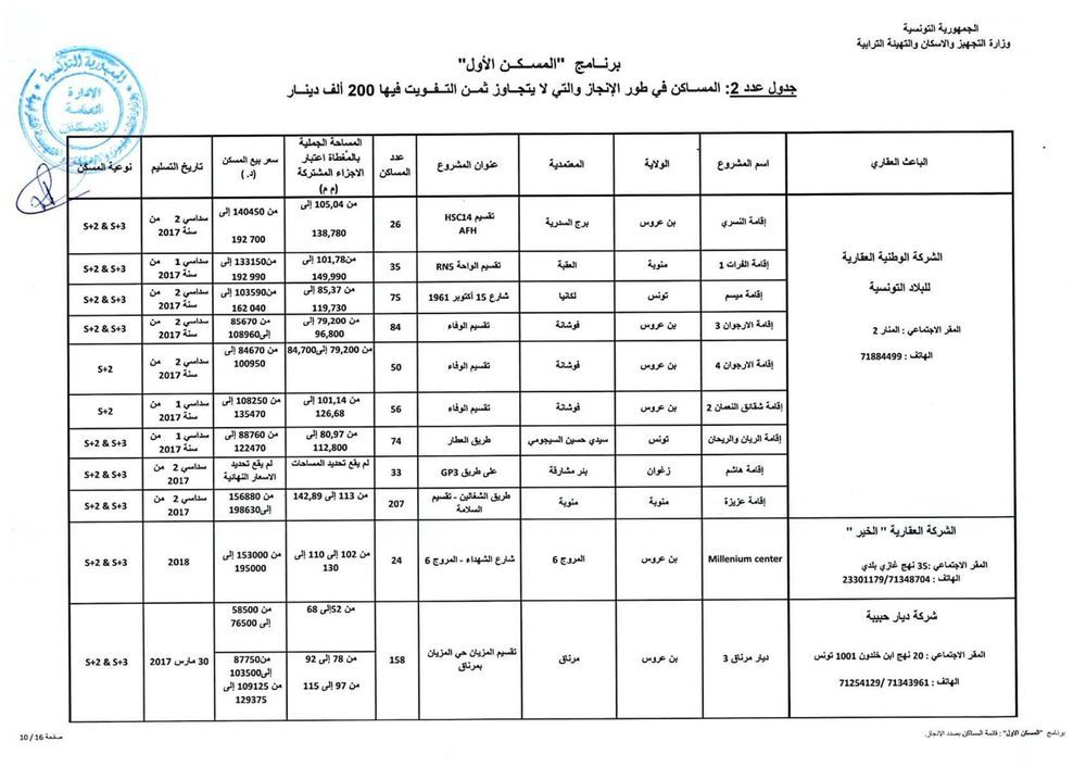 وفي هذا الاطار ابرزت وزارة التجهيز والاسكان والتهيئة الترابية انه تم افراد المساكن المنجزة من قبل الباعثين العقاريين بامر مستقل (الامر عدد 161 لسنة 2017)، في حين خصت المساكن موضوع بناء ذاتي بامر منفرد سيعرض على مجلس الوزراء القادم نظرا لان تمويل المساكن المنفردة يتطلب اجراءات قانونية مختلفة عن التدخل الاول حسب طبيعة العقار وموقعه وكيفية انجازه ومراقبة تقدم الاشغال بخصوصه.