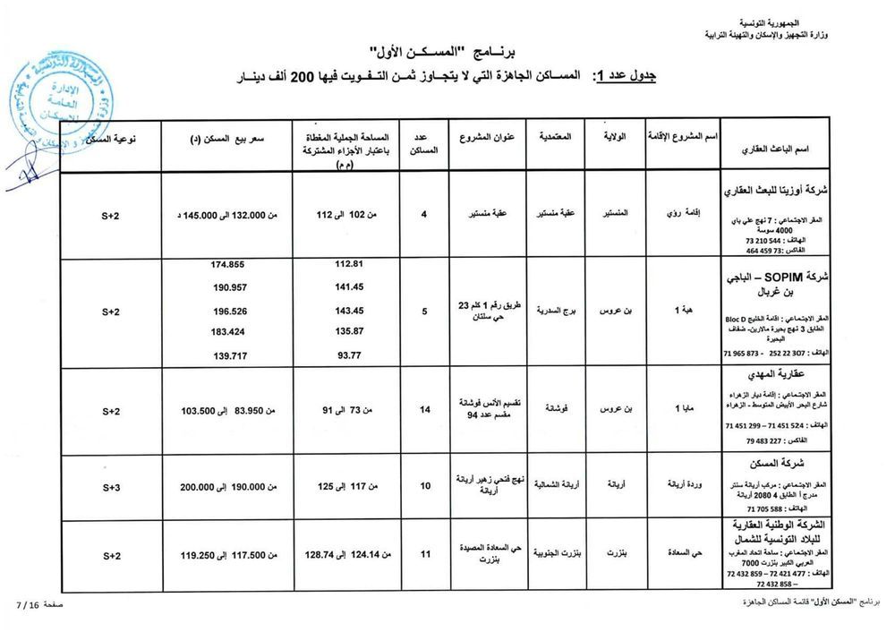 ويمكّن برنامج السكن الأول، الذى أطلقته الحكومة من اقتناء مسكن لا يفوق ثمنه 200 الف دينار. ونقلا عن المصدر ذاته، تتساءل المواطنة "نجيبة"، أستاذة تعليم ثانوي، "كيف يمكن لعائلة دخلها 10 مرات الاجر الادنى المضمون ان تشتري منزلا بقيمة 200 الف دينار وارجاعه طبعا بما لا يقل على 300 الف دينار باحتساب الفوائض.."؟.