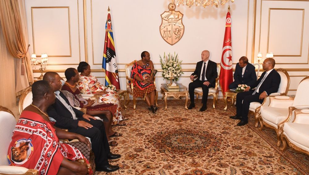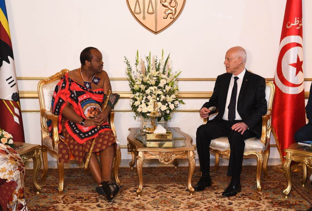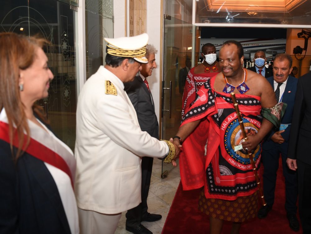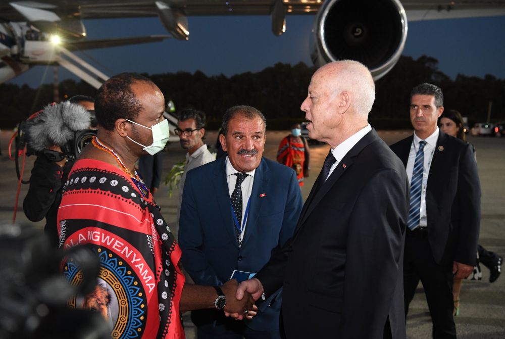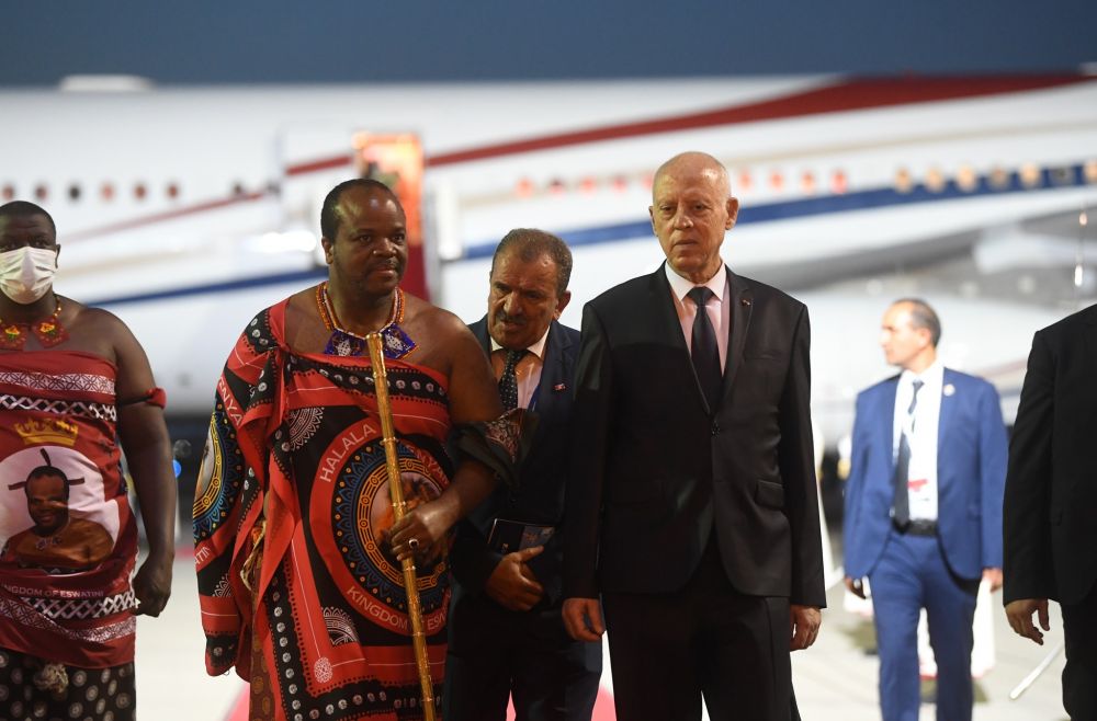 وأظهر فيديو نشرته الصفحة الرسمية لمؤتمر "تيكاد"، كواليس استقبال رئيس الجمهورية قيس سعيّد، بالمطار الرئاسي بالعوينة للملك مسواتي الثالث، ملك "إسواتيني"، الذي اختار أن يرتدي زياّ خاصا، يرمز لبلاده ويعكس مدى تمسكه واعتزازه بانتمائه للقارة الإفريقية.