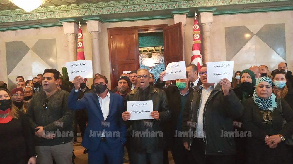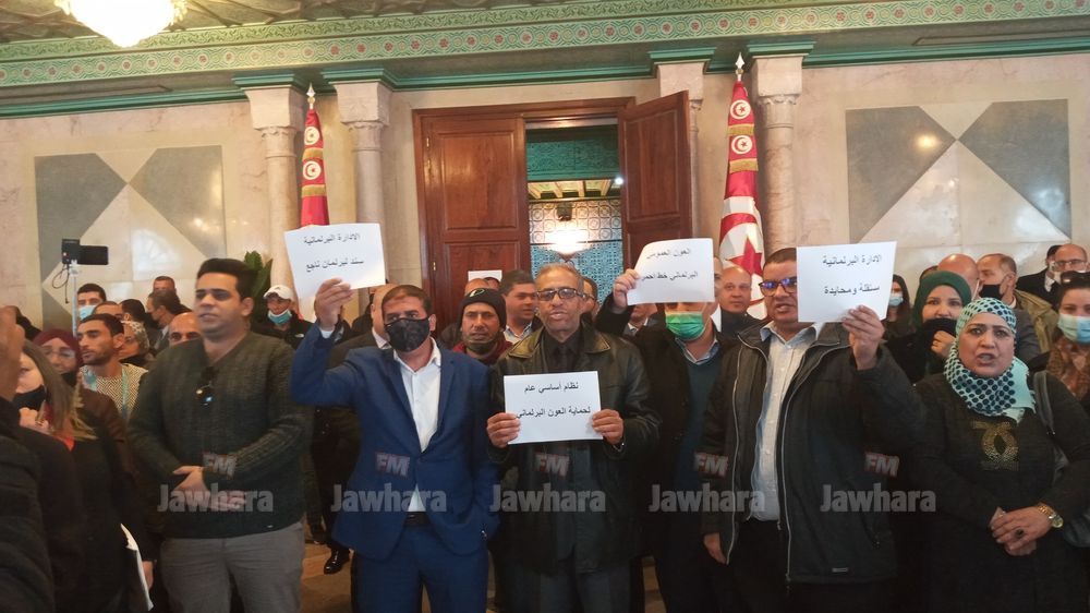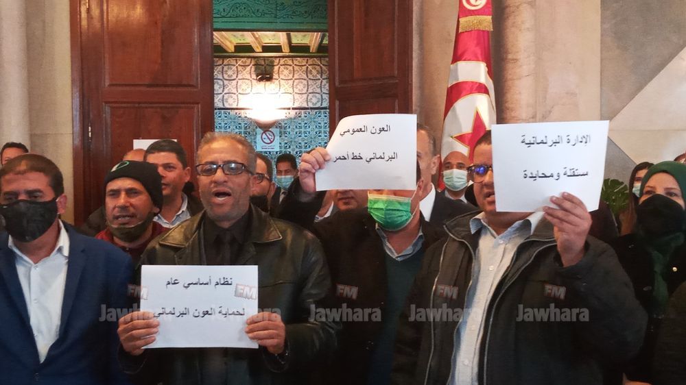 نفّذ أعوان وإطارات مجلس نواب الشعب، صباح اليوم الجمعة، وقفة احتجاجيّة بمقرّ المجلس "تنديدا بممارسات رئيسة كتلة الحزب الدستوري الحر، عبير موسي وهرسلتها لهم"، وللمطالبة "بردّ كرامة الموظف البرلماني".