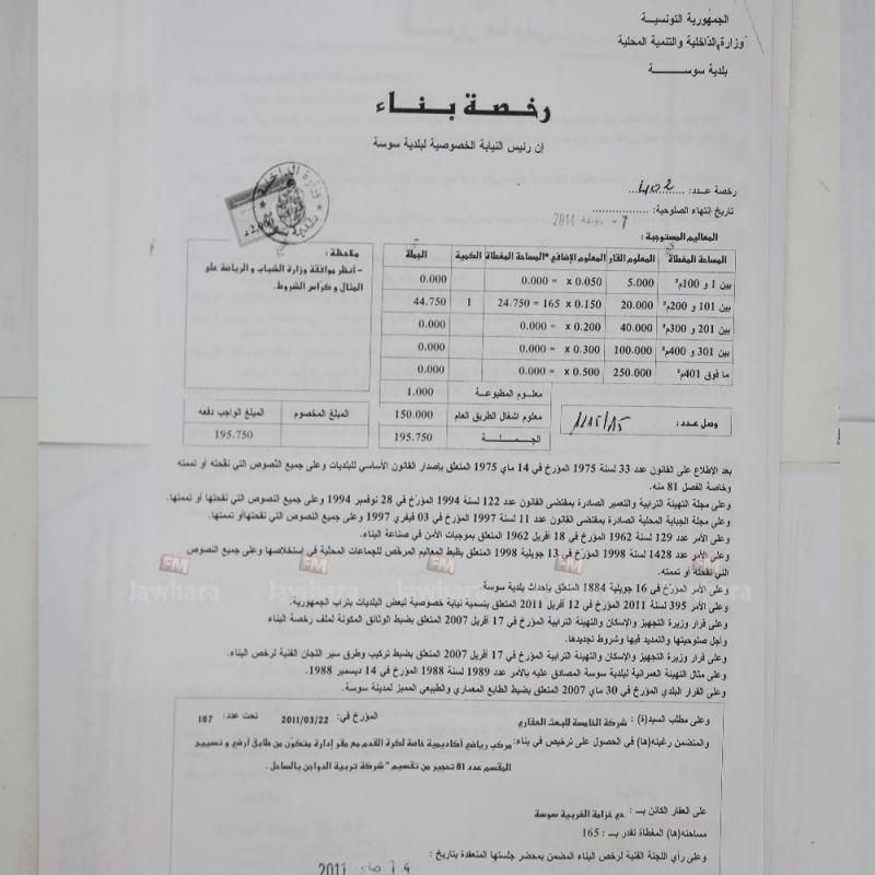 و أضاف أنه تحصل على كل التراخيص الضرورية و أن كل التعاملات التي قام بها قانونية من ذلك رخصة البناء و كذلك الاستجابة لكراس الشروط المتعلق بإحداث القاعات الخاصة للرياضة.