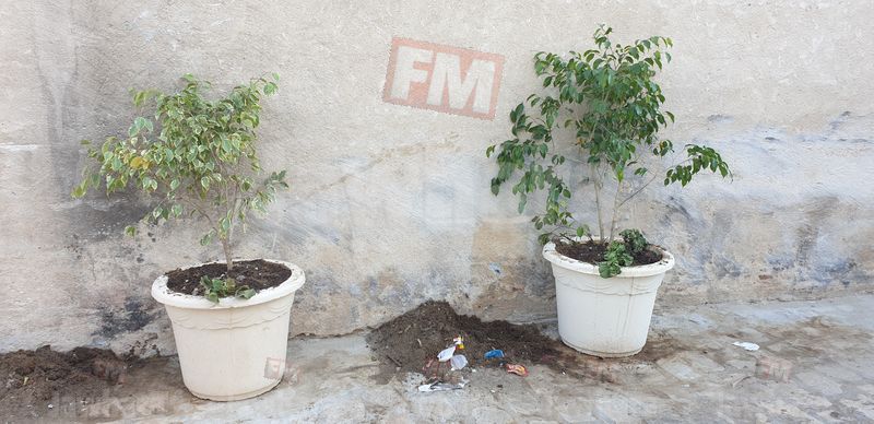 وقد تفطن الأهالي فجر اليوم إلى سرقة الأصص "المحابس" بعد اقتلاع النباتات وافراغها من محتواها من قبل مجهولين.
