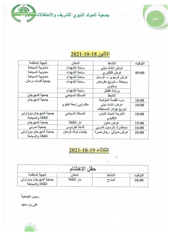 يذكر أنه لم يتم خلال السنة الفارطة تنظيم الاحتفالات نظرا للوضع الوبائي التي شهدته البلاد.