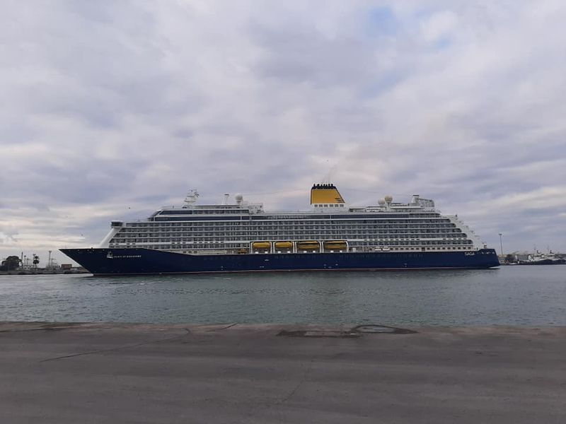 وصلت صباح اليوم الأربعاء، إلى ميناء حلق الوادي، أوّل سفينة سياحية، منذ 2019 وعلى متنها 724 سائحا من جنسيات انقليزية وفرنسية وألمانية وإسبانية وغيرها، على متن "spirit of discovery" القادمة من إسبانيا.