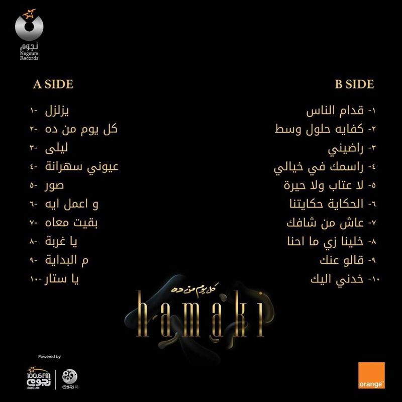 الجانب الأول يتضمن 10 أغانن وهي "يزلزال" و"كل يوم من ده" و"ليلى" و"عيونه سهرانة" و"صور" و"أعمل إيه" و"بقيت معاه" و"ياغربة" و"البداية" و"يا ستار".