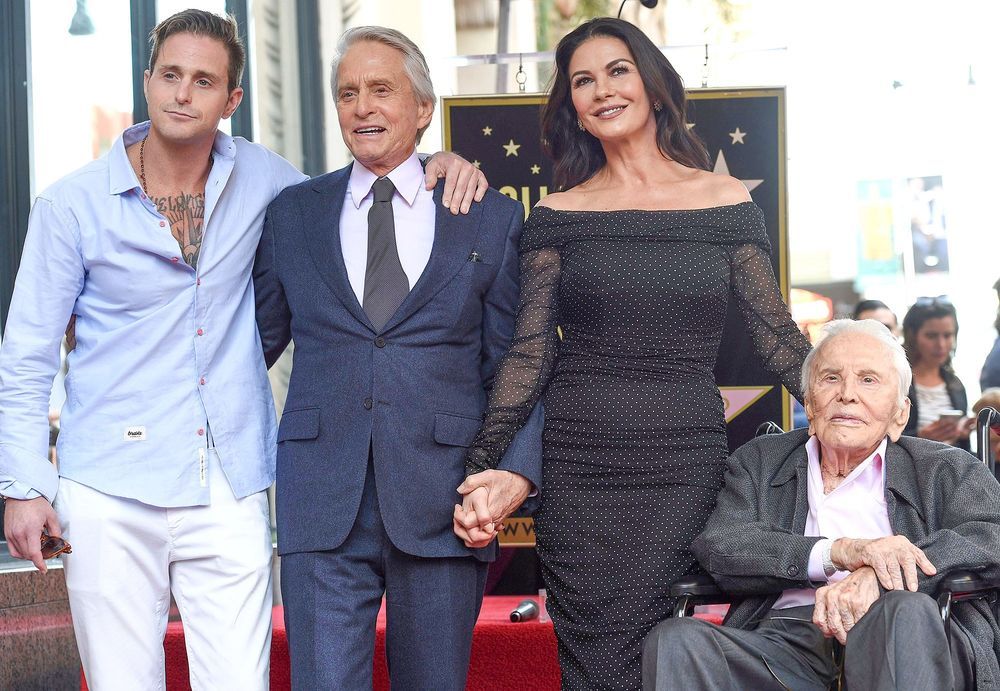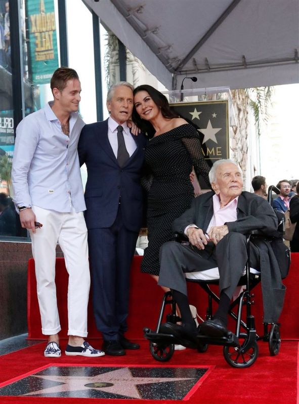 وإلى جانب أبيه كيرك دوغلاس ,101 عام, رافقت مايكل دوغلاس ,74 عاما, الفائز بجائزة أوسكار عن دوره في فيلم "وول ستريت" إلى ممر الشهرة زوجته الممثلة كاثرين زيتا جونز والممثلة جين فوندا.
