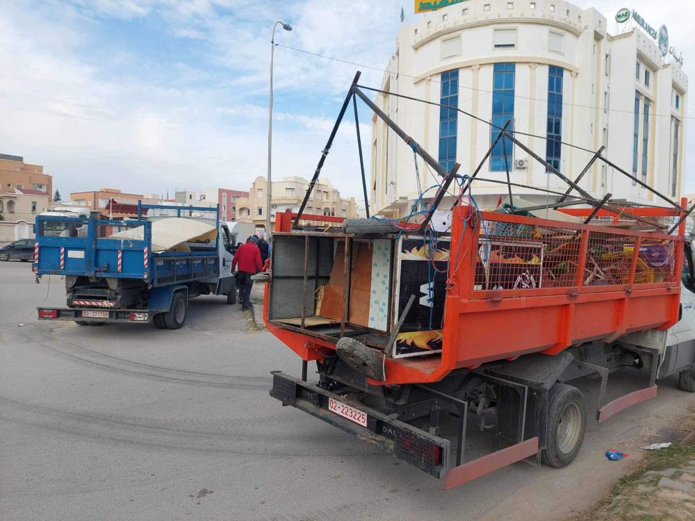 وأضافت البلدية أنه قد تم الحجز الفعلي للعربات المجرورة المعدة للاكلة الخفيفة وغيرها من الأنشطة التجارية الاخرى والمخالفة باستغلالها المفرط للرصيف وذلك بحجز الحواجز الحديدية وغيرها المثبتة منها وتحرير الارصفة و إزالة الاكشاك وتسهيل حركة المرور بها لضمان السلامة المرورية للمترجلين والحد من حوادث المرور مع تحرير محاضر ضد المخالفين.