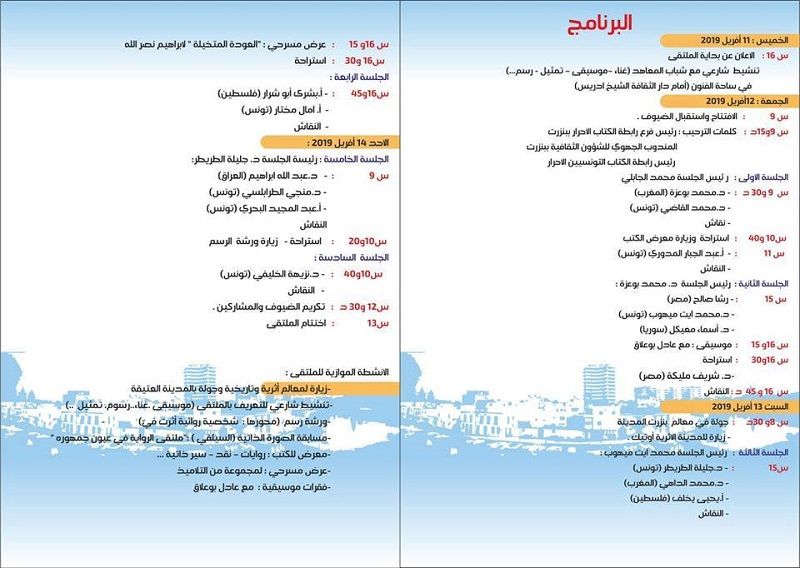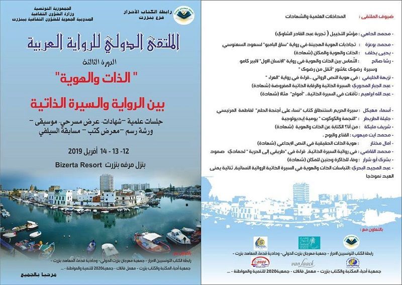 بدعم من المندوبية الجهوية للشؤون الثقافية بولاية بنزرت تنظم رابطة الكتاب الأحرار ببنزرت الملتقى الدولي للرواية العربية في دورته الثالثة ، وذلك في الفترة الفاصلة بين 12 و14 أفربل 2019 . تقام بالمناسبة جلسات علمية وعروض موسيقية ومسرحية ومعرض للكتب.