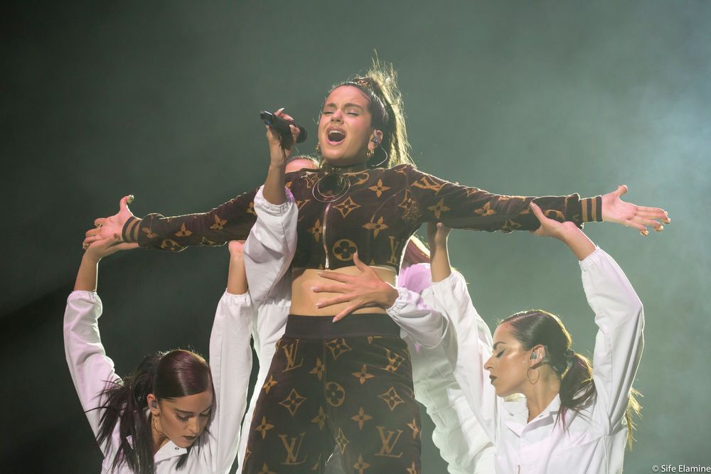 اهتزت الحفلة كذلك بعرض للنجمة الإسبانية الشابة روساليا، والتي أبهرت الجمهور بلوحات من فن الفلامنكو الممزوج بنوتات موسيقى حديثة، فاستحقت بالفعل الخمسة جوائز للجرامي اللاتيني.