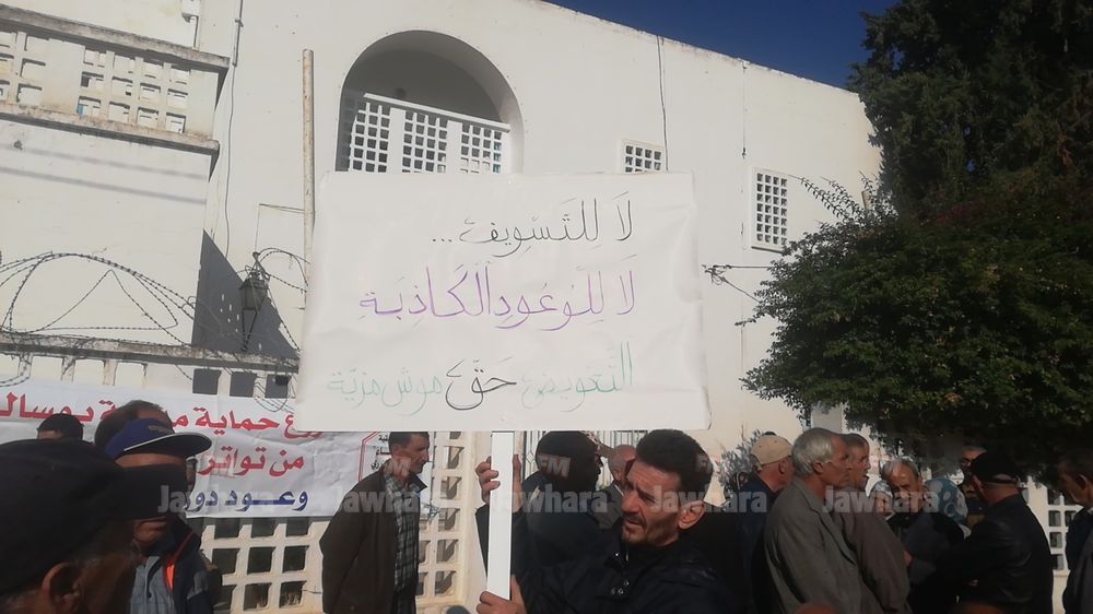 واستنكر المحتجون في تصريحات لمراسل "الجوهرة أف أم" ما اعتبروه "مماطلة" السلط المعنية على الرغم من أن الملف في مراحله الأخيرة ولم يبق إلّا تعليق قائمات المتضرّرين.