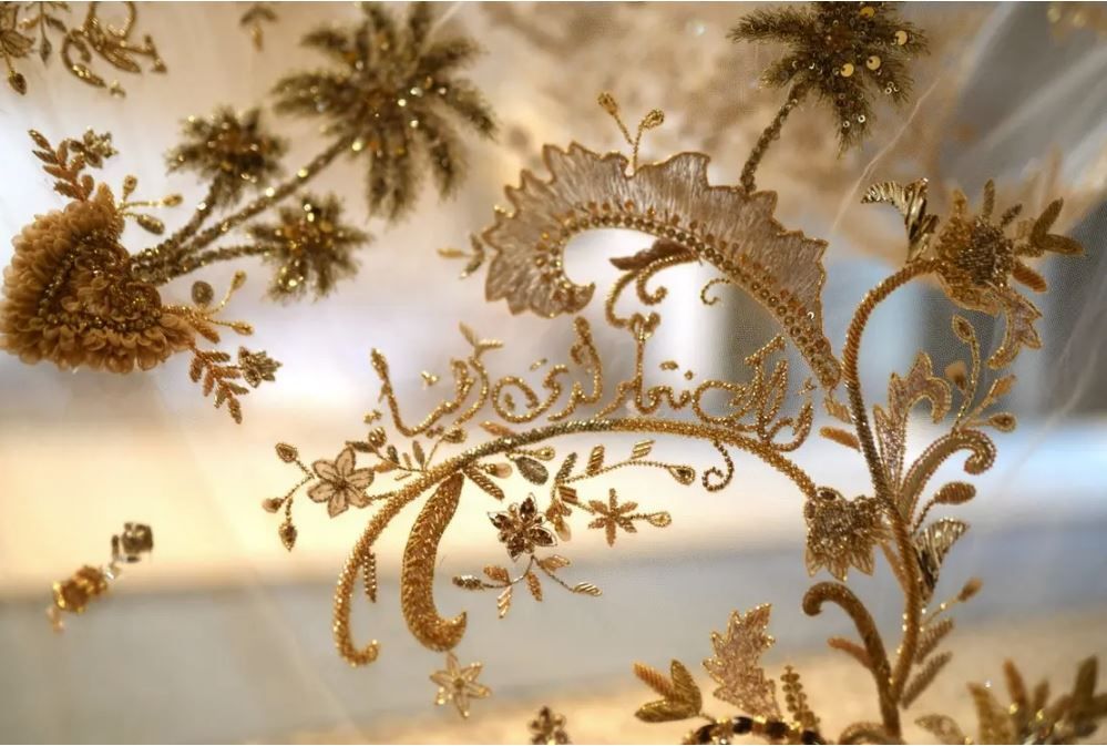 وأردفت المصممة السعودية أنها خطت على الفستان كلمات للشاعر التونسي أبو القاسم الشابي يقول فيها "أراك فتحلو لدي الحياة.. ".