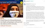 ودعت إلى تسليط الضوء على معاناة الفتيات المحجبات حول العالم، وعلقت عليها قائلة: "لباس المرأة ليس من شأنكم".