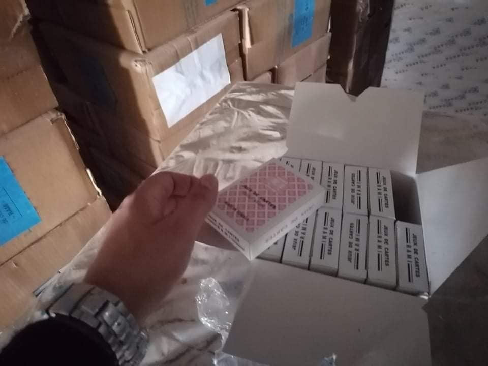 وفي السياق ذاته تمكنت  فرقة الحرس الديواني بنزرت بالتنسيق مع مصالح الحرس البلدي من حجز كمية هامة من ألعاب الورق فاقت ال57 ألف علبة بمطبعة تولى صاحبها تصنيعها بصفة عشوائية قصد ترويجها بالأسواق الموازية و تهريبها إلى قطر مجاور.