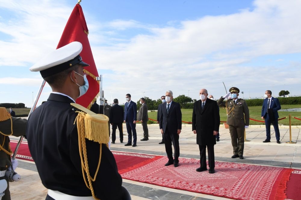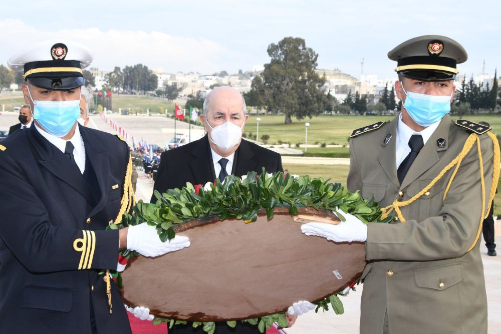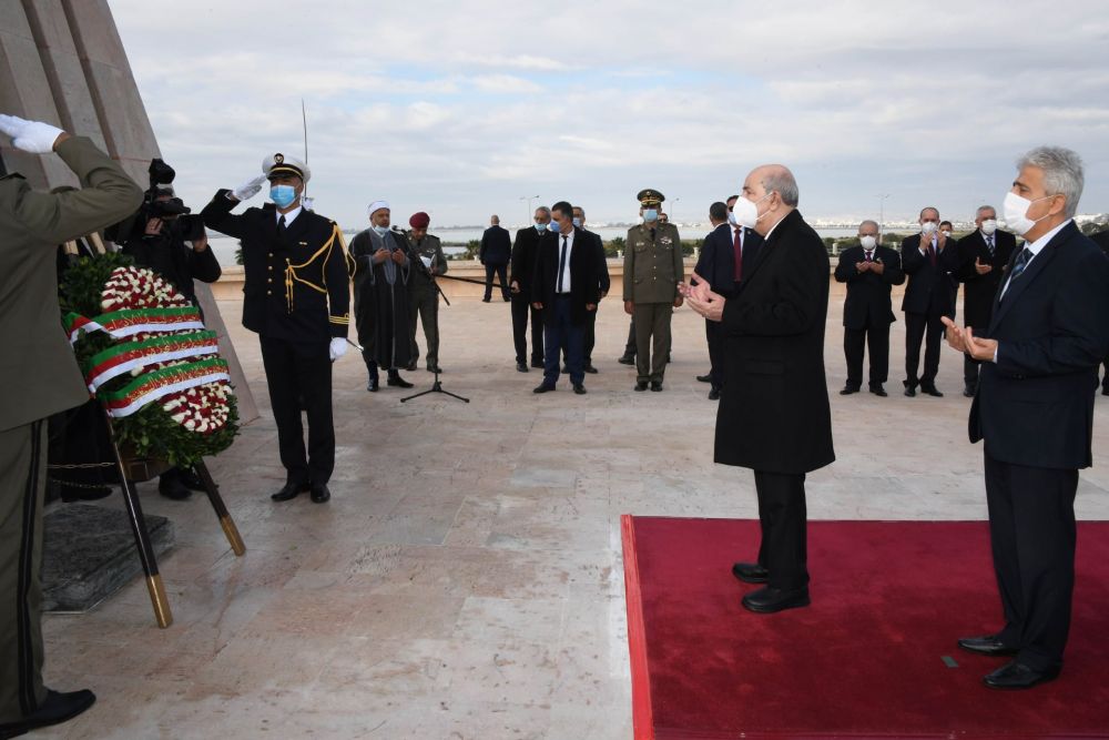 ترحم الرئيس الجزائري عبد المجيد تبون يوم الخميس، على أرواح شهداء تونس بروضة الشهداء المتواجدة بمنطقة السيجومي.