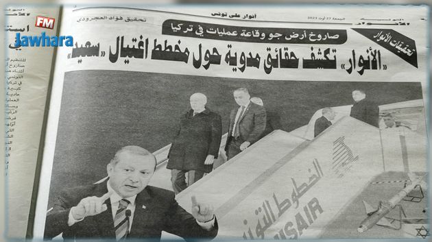 أثار التحقيق الذي نشرته صحيفة الأنوار التونسية في عددها الصادر اليوم الجمعة، جدلا واسعا وتعليقات ساخرة في مواقع التواصل الاجتماعي، حيث تضّمن كما في جاء في عنوانه "حقائق مدوية حول مخطط اغتيال سعيّد".