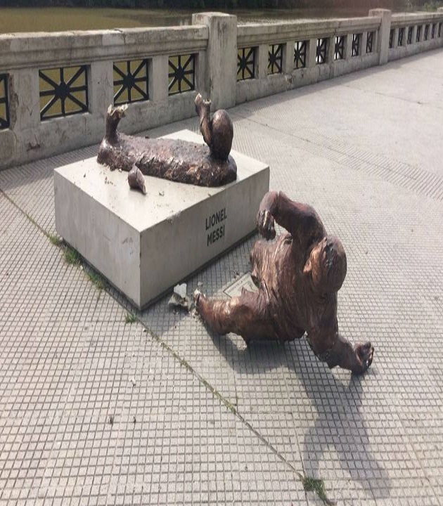ونقلت الصحف الأرجنتينية صورا لتمثال اللاعب الحالي لبرشلونة ملقى على الأرض بعد أن تم تدميره من قبل مجموعة من الأشخاص الذين لم تنجح الشرطة المحلية إلى حد الآن في تحديد هويتهم.