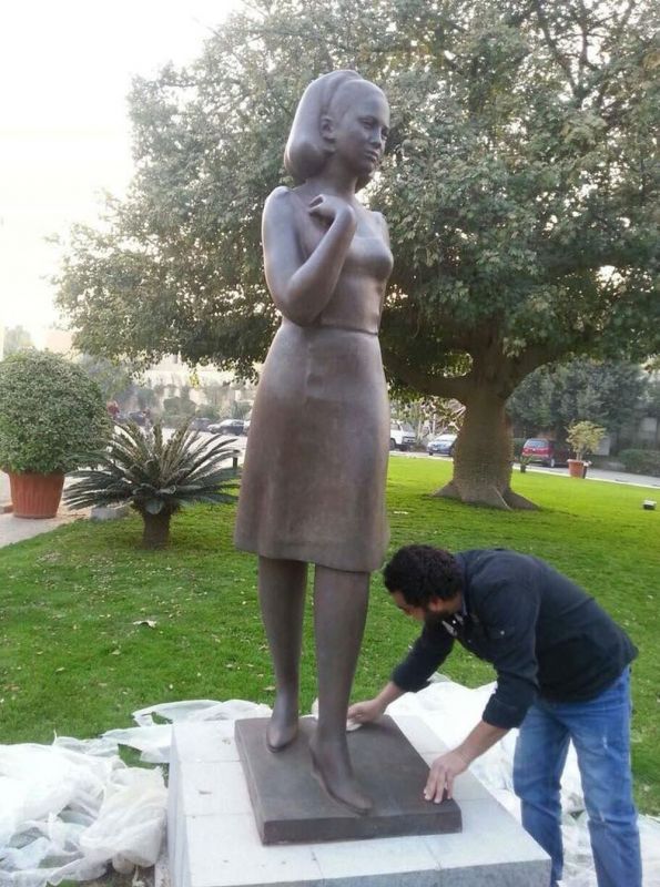 تركيز تمثال فاتن حمامة أمام المسرح الكبير بدار الأوبرا المصرية (صور)