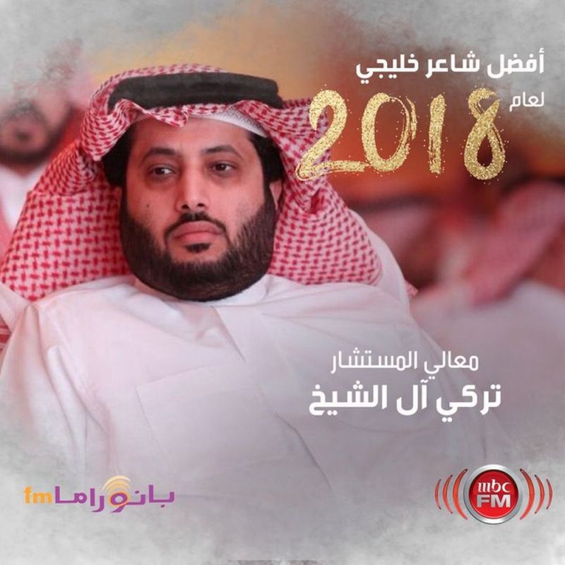 واختارت الإذاعة المستشار في الديوان الملكي السعودي ورئيس الهيئة العامة للترفيه تركي آل الشيخ كأفضل شاعر على مستوى الخليج في العام 2018.