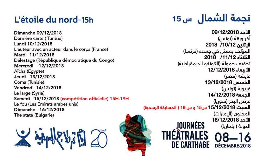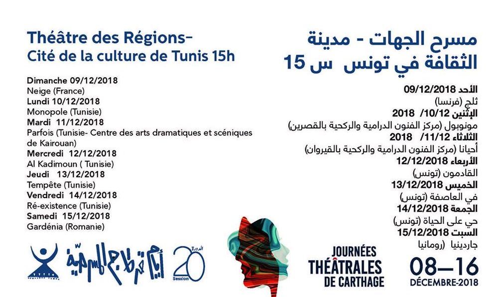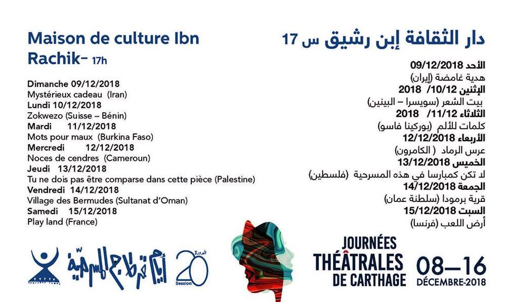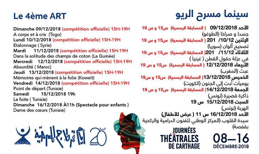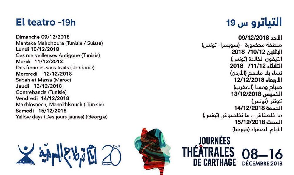 تفتتح السبت القادم : البرنامج المفصل للدورة 20 لأيام قرطاج المسرحية