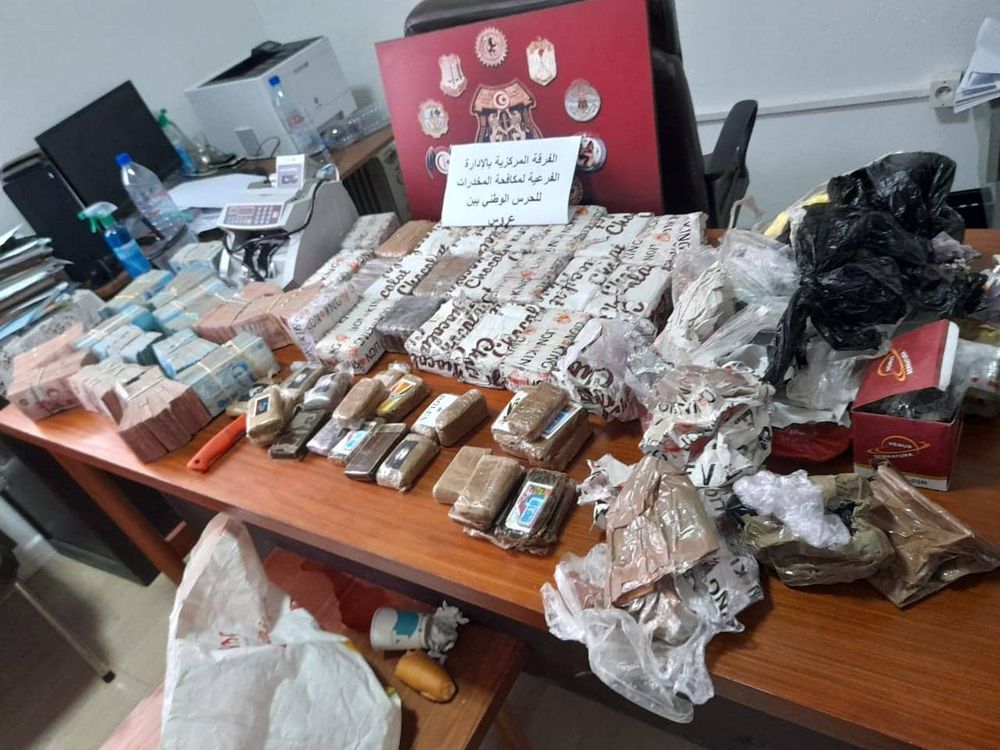 كما تم إلقاء القبض على نفرين و حجز لديهما 141 صفيحة من مخدر القنب الهندي و مبلغا ماليا من العملة التونسية و الأجنبية.