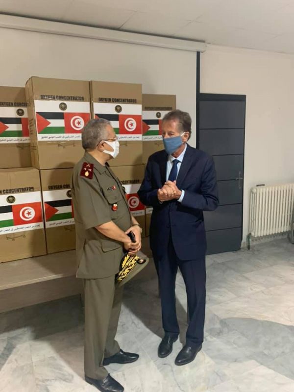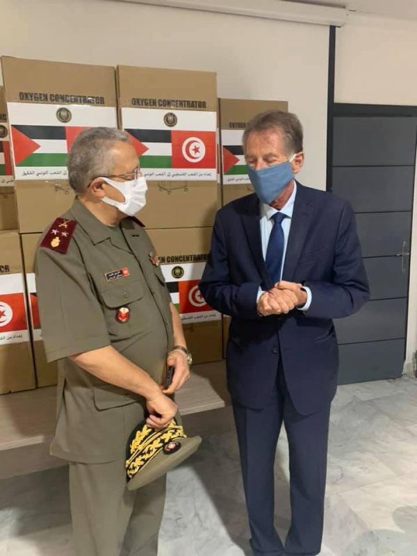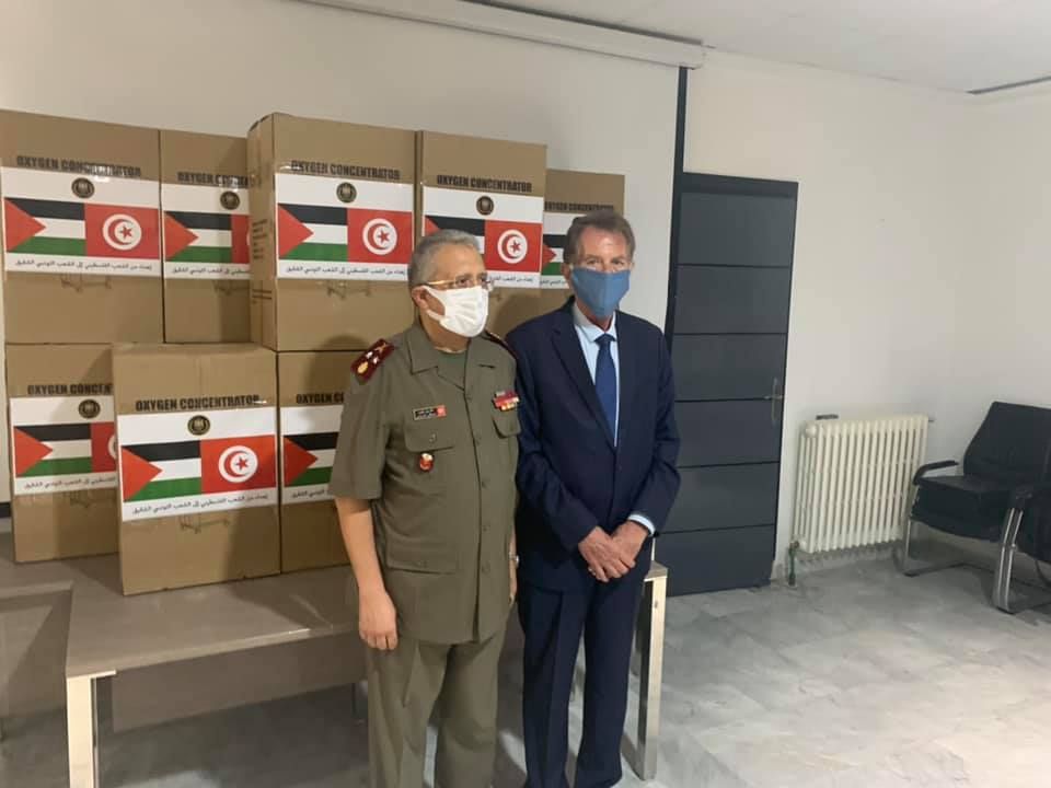 تسلّمت اليوم الإثنين 09 أوت 2021 ،إدارة الصحة العسكرية بالمستشفى العسكري بتونس ، 50 جهاز مكثّف أوكسجين من سفارة دولة فلسطين.