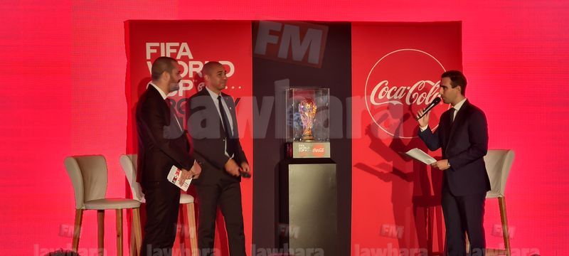 و وصل رمز كأس العالم بحضور اسطورة كرة القدم اللاعب دافيد تريزيغيه و المرافق الاساسي للكأس الاصلية المصنوعة من الذهب الخالص .