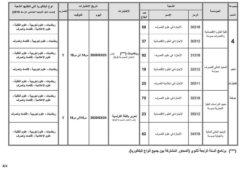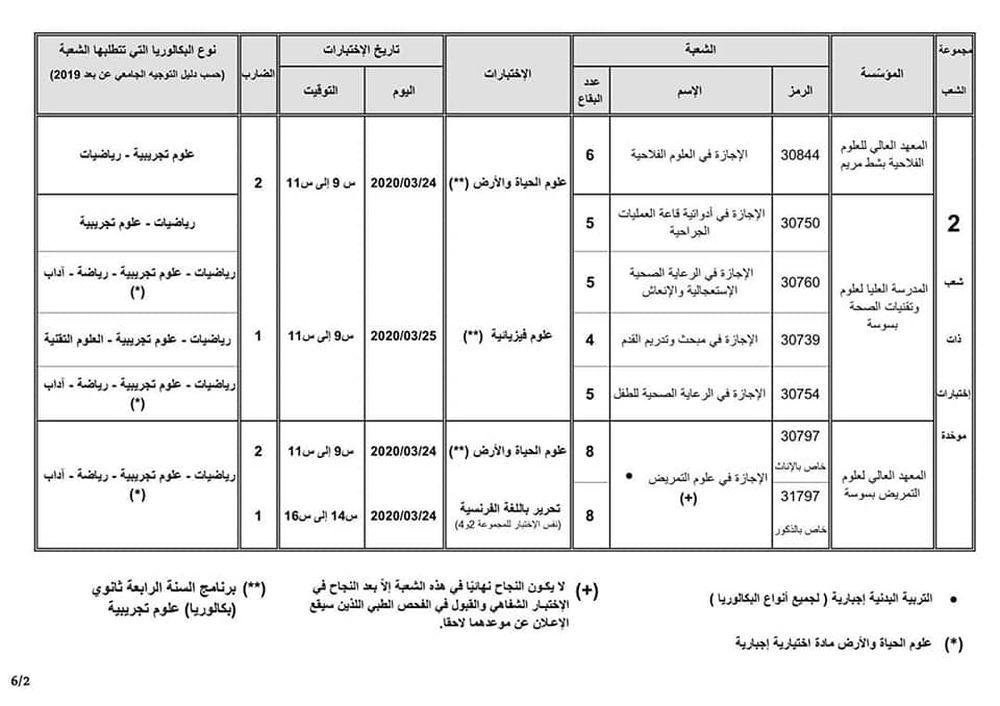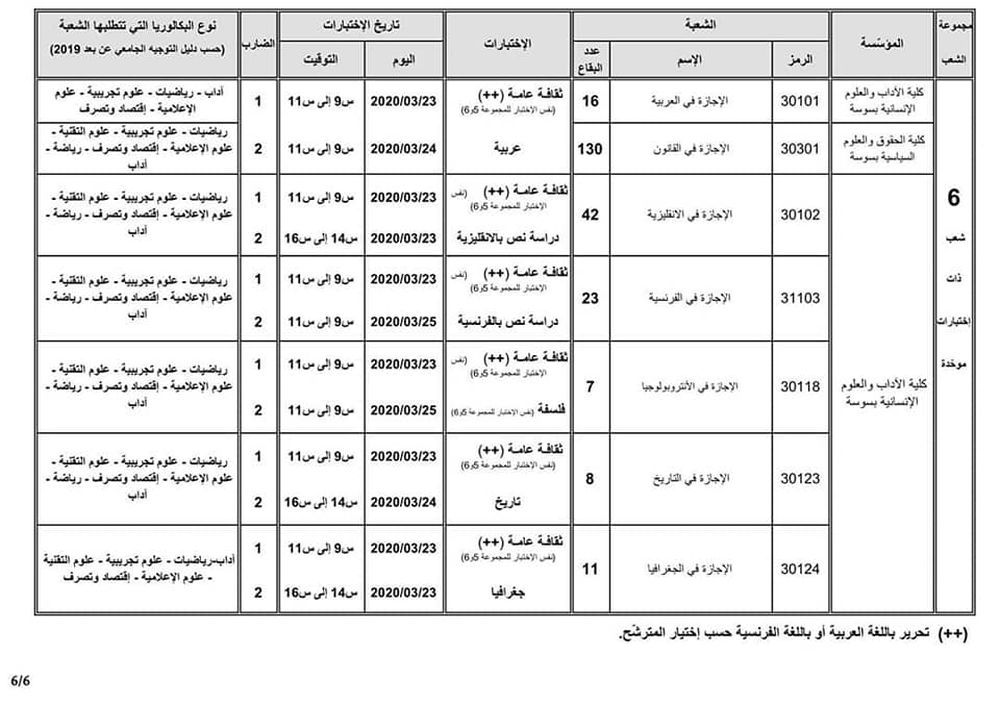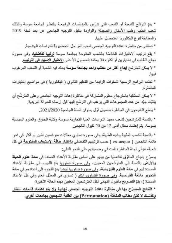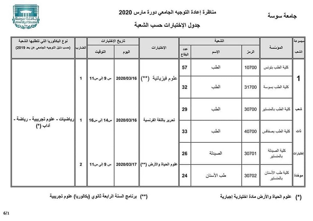 وتشمل المناظرة جميع الشعب الراجعة إليها بالنظر وكذلك شعب الطب وطب الأسنان والصيدلة التي تم افرادها بمناظرة اعادة توجيه موحّدة على المستوى الوطني لفائدة الطلبة التونسيين المحرزين على شهادة باكالوريا 2018 أو 2019.