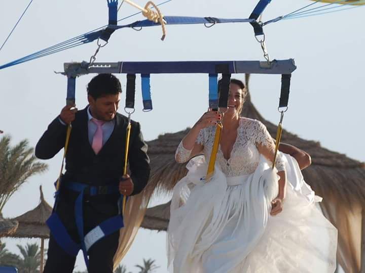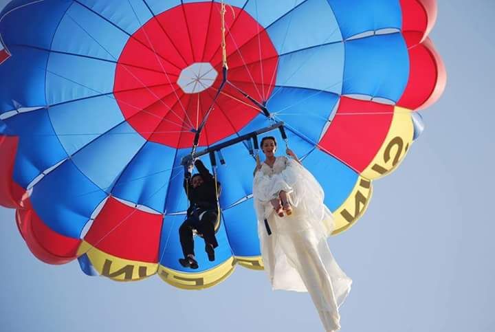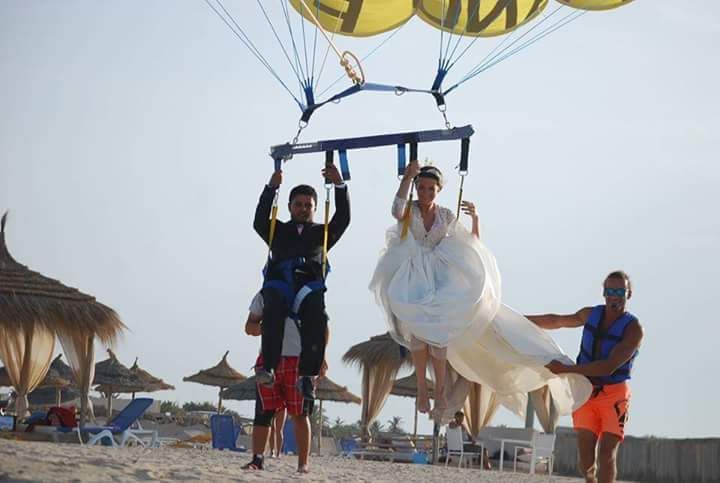 وخلافا لما يعرف في حفلات الزواج من حضور للمدعوويين والفرقة الموسيقية والأضواء اختار أحمد البالغ من العمر 26 سنة أن يحتفل بزواجه في مظلة (براشوت) حيث اتجه مع حبيبته التي كانت ترتدي فستانا أبيض إلى الشاطئ وصعدا في مظلة وكانا سعيدين جدا.
