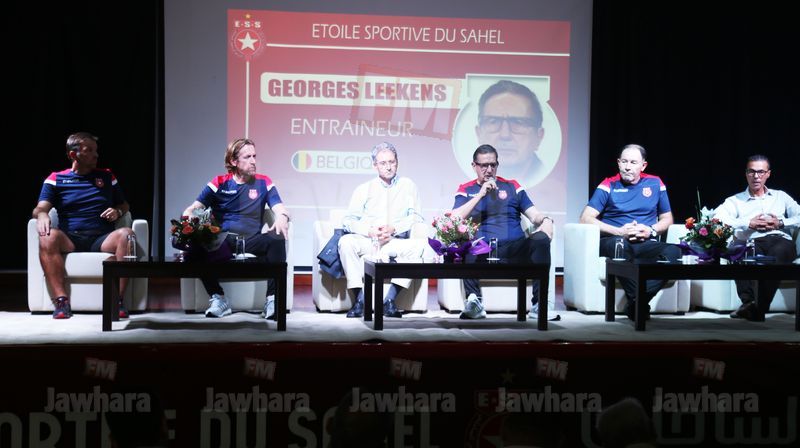 عقد النجم الساحلي اليوم الخميس 11 أكتوبر 2018 ندوة صحفية لتقديم الاطار الفني الجديد بقيادة البلجيكي جورج ليكانز صحبه مساعديه البلجيكي باتريك دي ويلد و توفيق زعبوب.