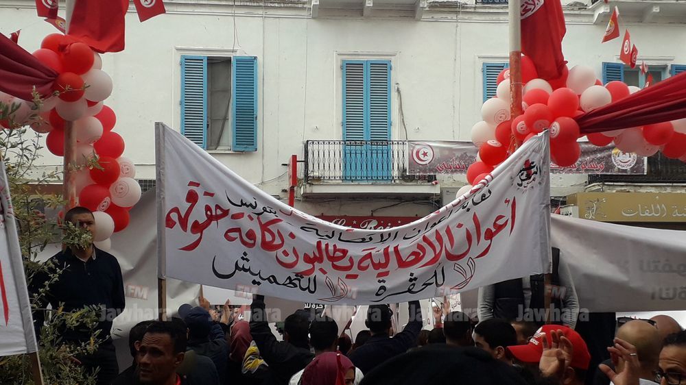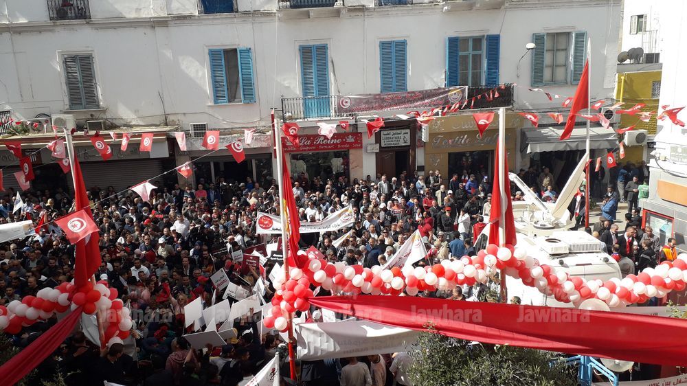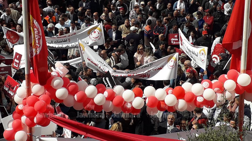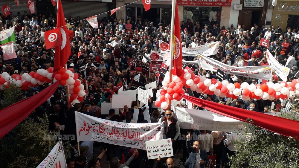 نقل مراسل "الجوهرة أف أم"، ماهر الصغير، بالصور اليوم الأربعاء، تجمعا عماليا بساحة محمد علي أمام مقر الاتحاد العام التونسي للشغل بتونس العاصمة، بمناسبة يوم العمال العالمي.