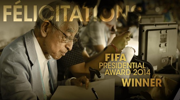 جائزة رئيس الإتحاد الدولي : هيروشي كاكاوا أكبر صحفي في مونديال 2014 ( 90 عاما)