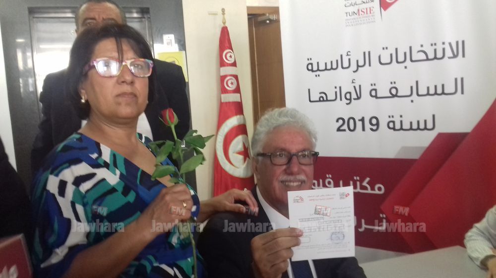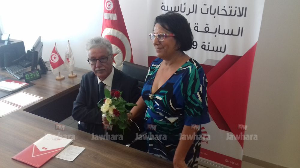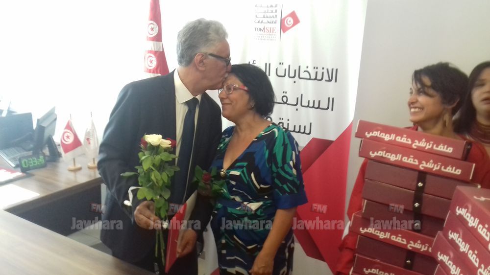 وتم ذلك بحضور زوجته الناشطة الحقوقية راضية نصراوي  ورفاق حمة الهمامي من الجبهة الذين رافقوه إلى مقر الهيئة العليا المستقلة للانتخابات.