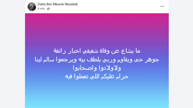 دليلة مصدّق حول شائعة وفاة شقيقها: 'حرام عليكم'