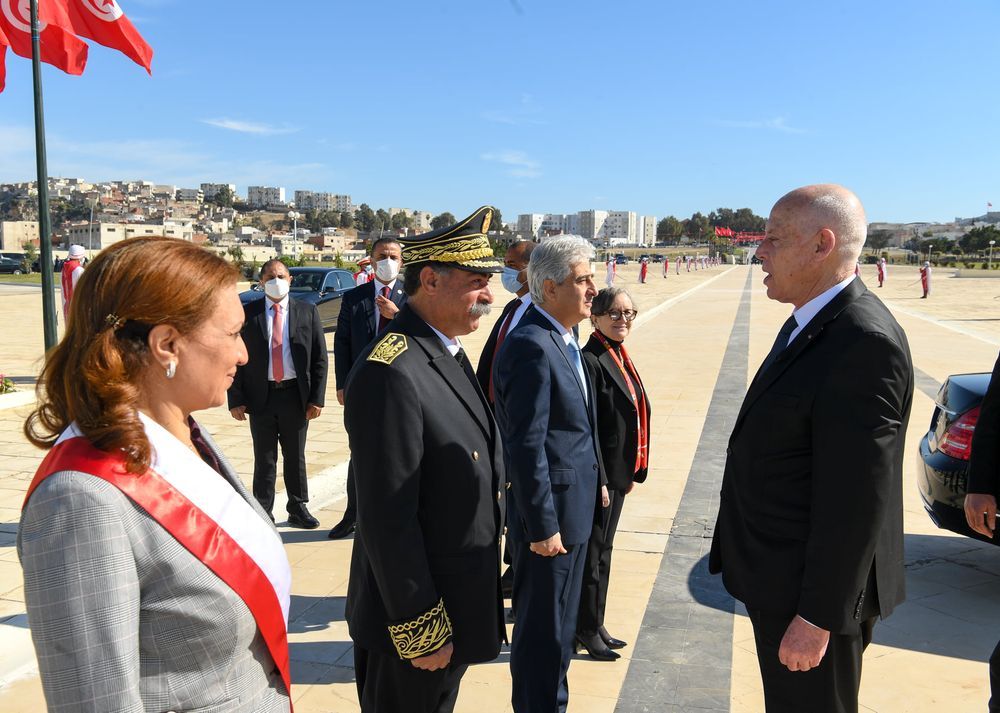 وحضر هذا الموكب كل من رئيسة الحكومة نجلاء بودن ، ووزير الدفاع الوطني عماد مميش، ووالي تونس كمال الفقي، ورئيسة بلدية تونس سعاد عبد الرحيم، و أعضاء المجلس الأعلى للجيوش.