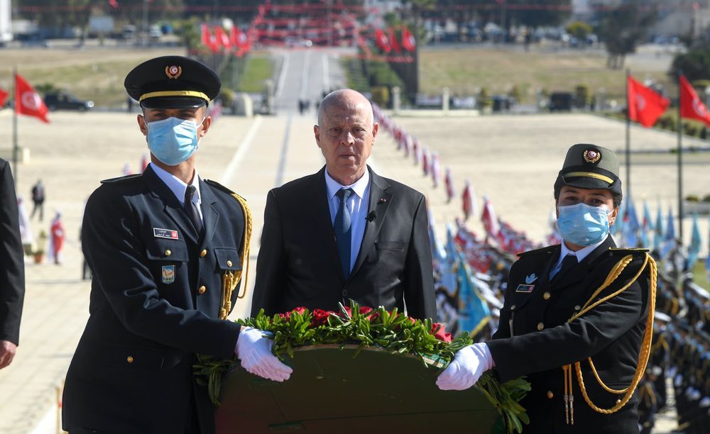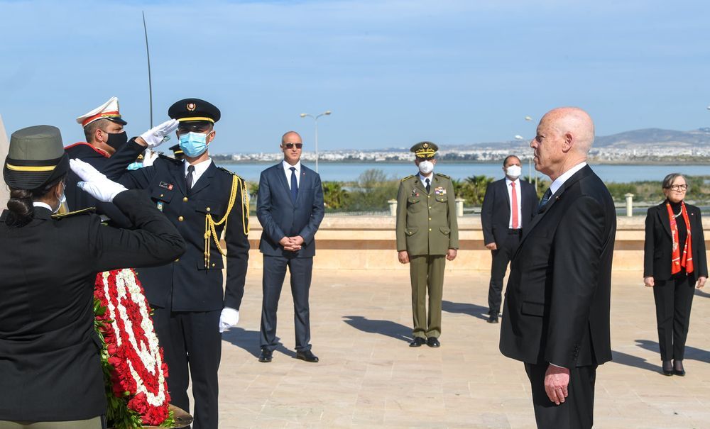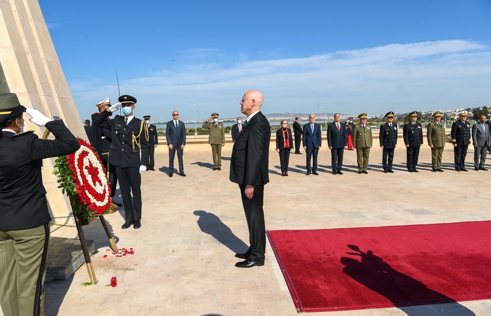 أشرف رئيس الجمهورية قيس سعيد، صباح اليوم السبت 9 أفريل 2022 بروضة الشهداء بالسيجومي بتونس العاصمة، على موكب إحياء الذكرى الرابعة والثمانين لعيد الشهداء.