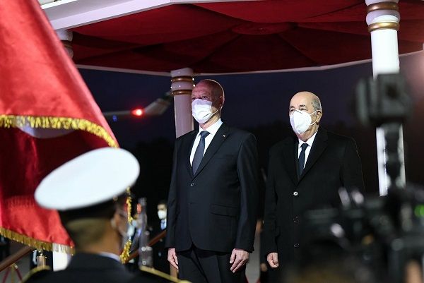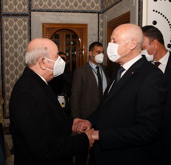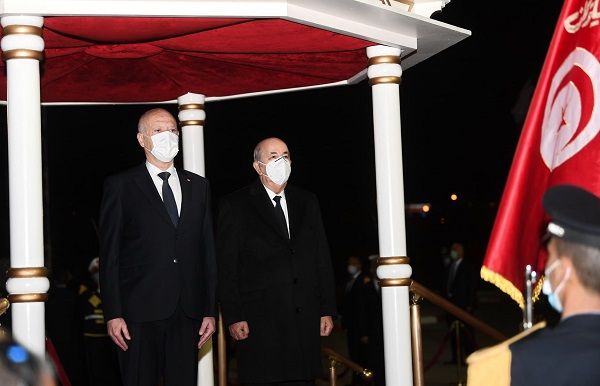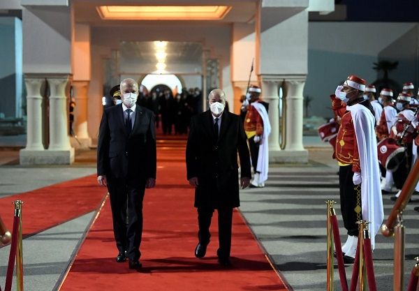ودّع رئيس الجمهورية، قيس سعيّد، بعد ظهر اليوم الخميس، بالجناح الرئاسي بمطار تونس قرطاج الدولي، الرئيس الجزائري، عبد المجيد تبّون، الذي أدّى زيارة دولة إلى تونس يومي 15 و16 ديسمبر 2021.