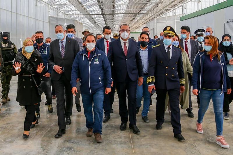 وتجول رئيس الحكومة في مختلف أرجاء المشروع الذي يمتد على أكثر من 40 هكتار موزعة بين مناطق انتاج مكيفة وبيوت مكيفة حديثة ملائمة لانتاج الباكورات على امتداد السنة، واطلع على مختلف مراحل الانتاج والتكييف والتبريد والاعداد للتصدير، وفق ما جاء على الصفحة الرسمية لرئاسة الحكومة.