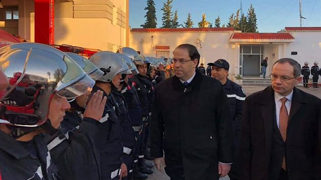 رئيس الحكومة يزور ثكنة الحماية المدنية بجندوبة (صور)