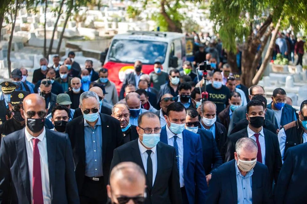 حضر رئيس الحكومة هشام المشيشي بعد ظهر اليوم بمقبرة الجلاز بالعاصمة موكب دفن الفقيد النقابي الأمين العام المساعد للاتحاد العام التونسي للشغل بوعلي المباركي.