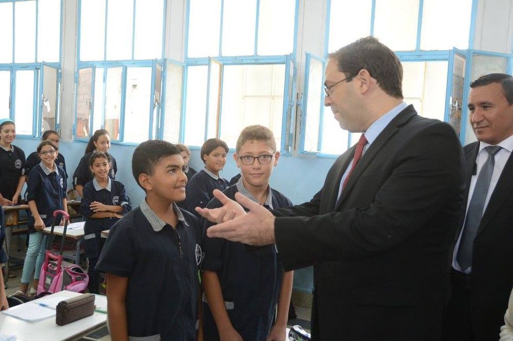 واكب رئيس الحكومة يوسف الشاهد صباح اليوم الخميس 15 سبتمبر 2016 العودة المدرسية بمدرسته الابتدائية الهادي خفشة صحبة مدرسته.