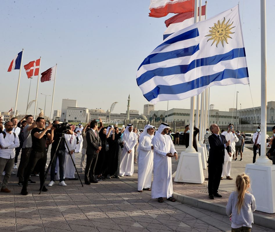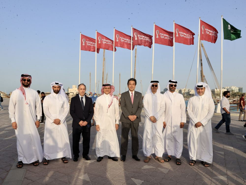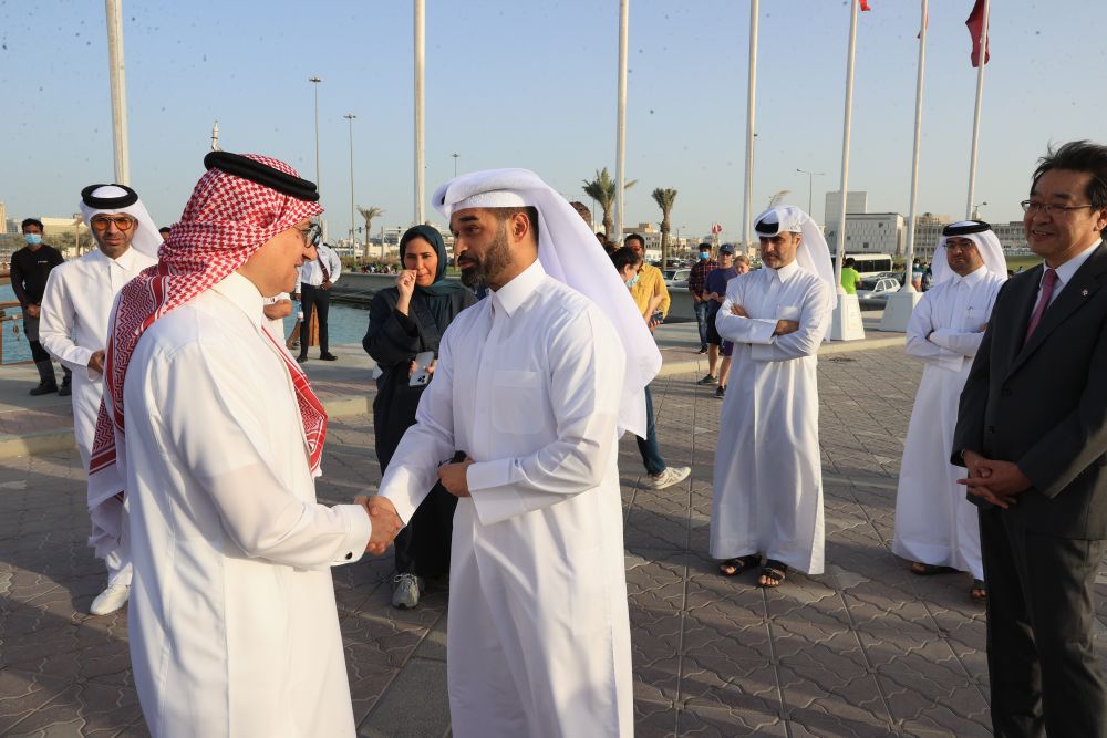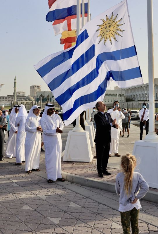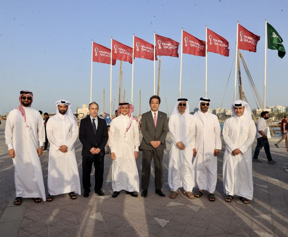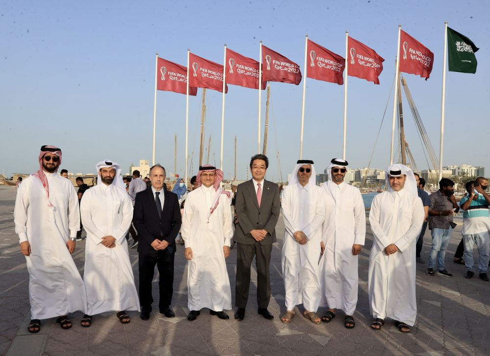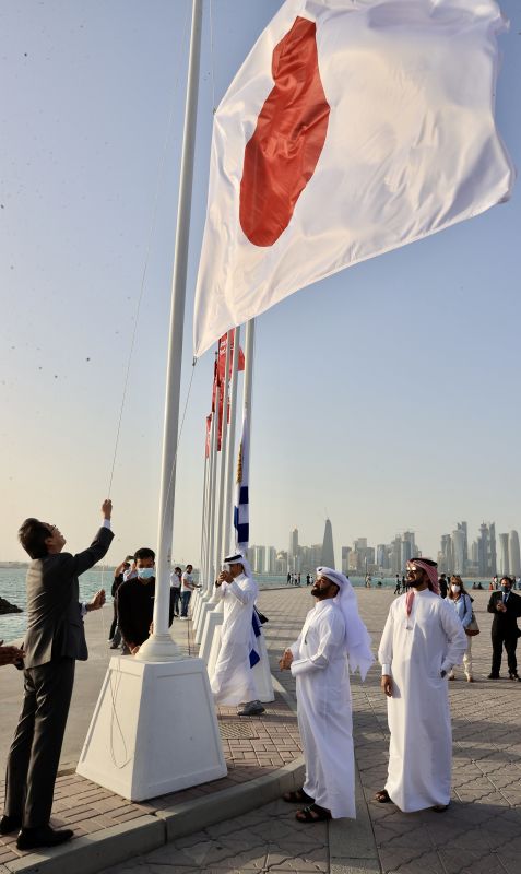 ورفعت أعلام دول السعودية واليابان وأوروغواي والإكوادور في فعالية نظمتها اللجنة العليا للمشاريع والإرث بكورنيش الدوحة وسط أجواء احتفالية.