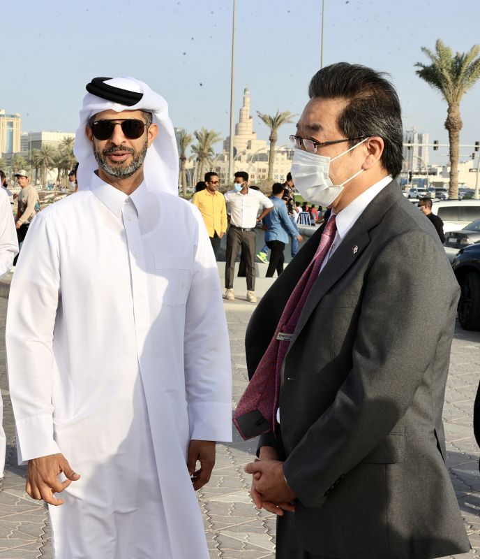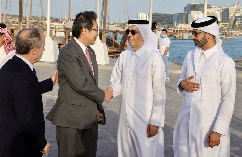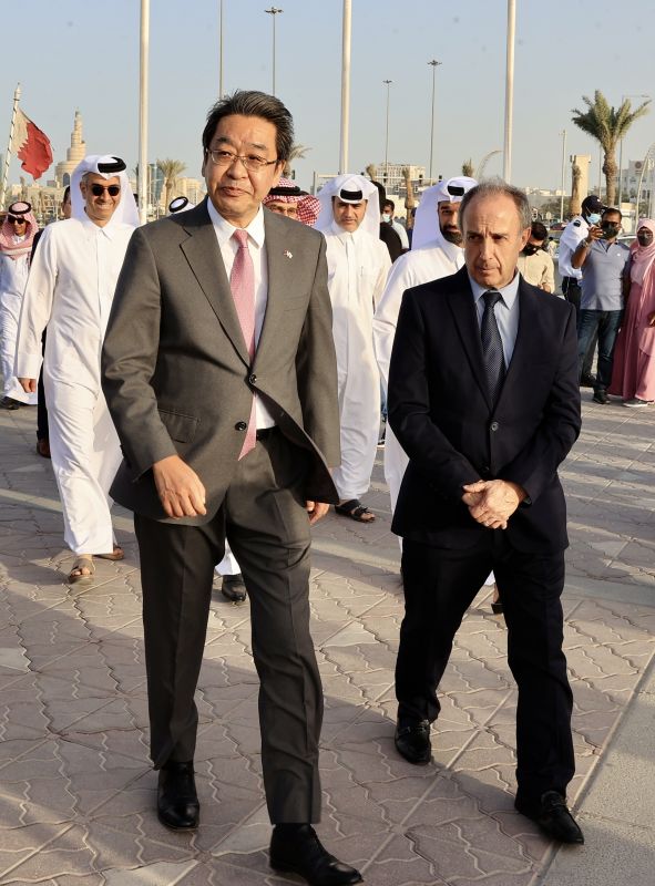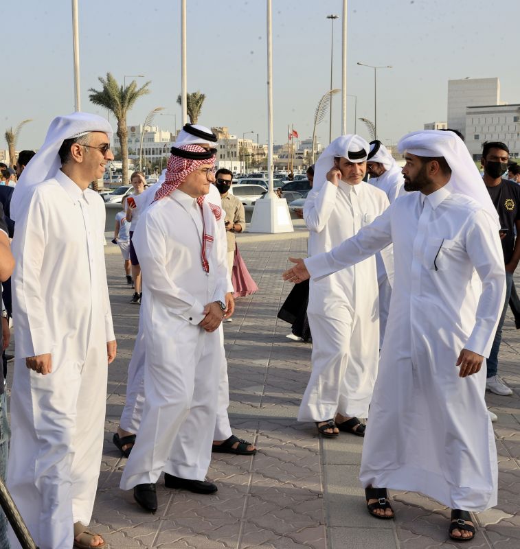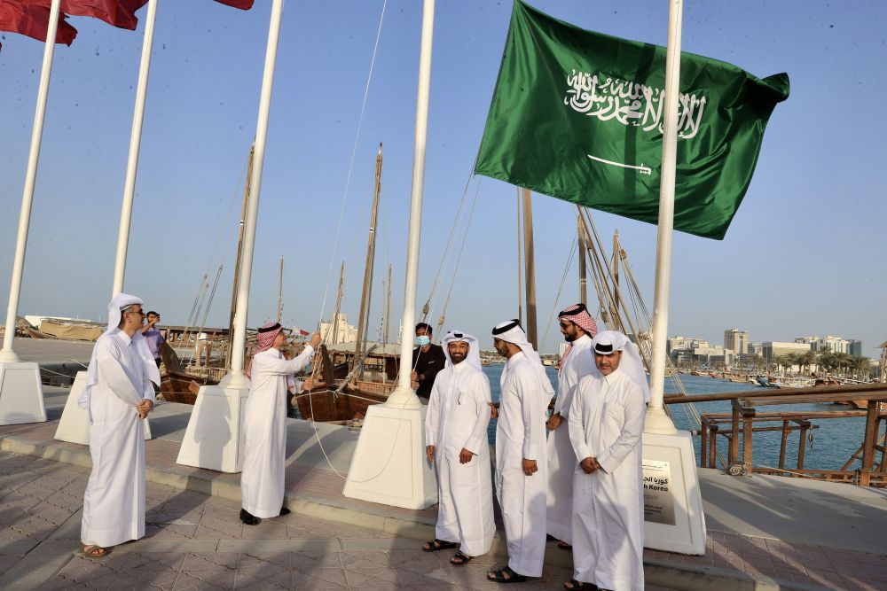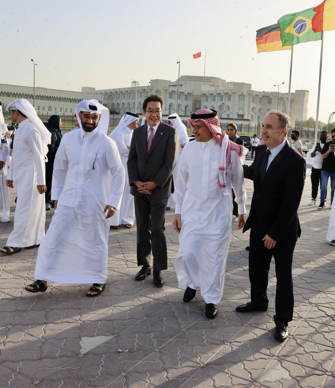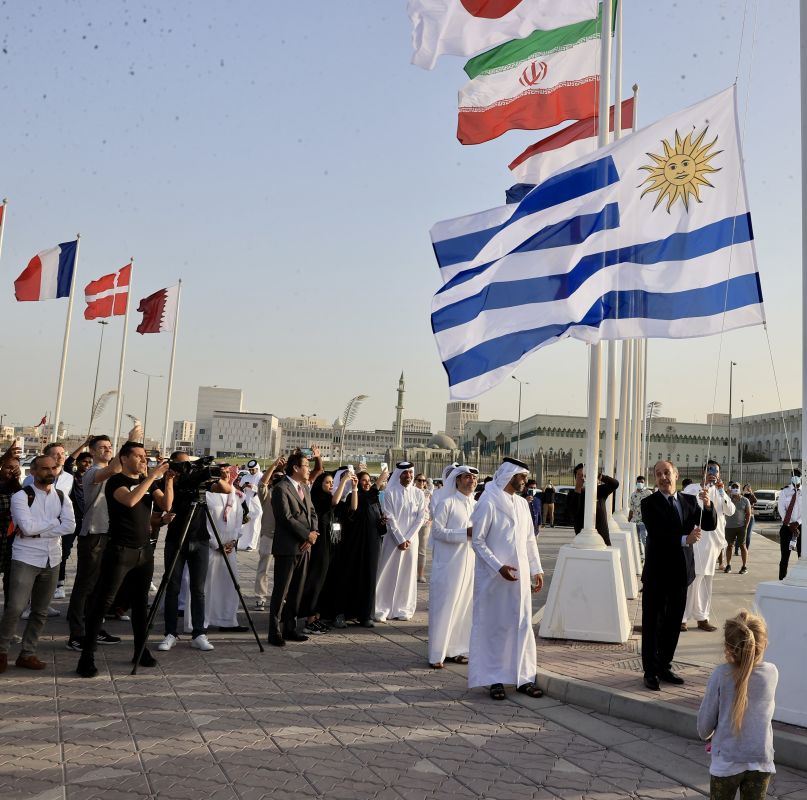 ورفعت أعلام دول السعودية واليابان وأوروغواي والإكوادور في فعالية نظمتها اللجنة العليا للمشاريع والإرث بكورنيش الدوحة وسط أجواء احتفالية.