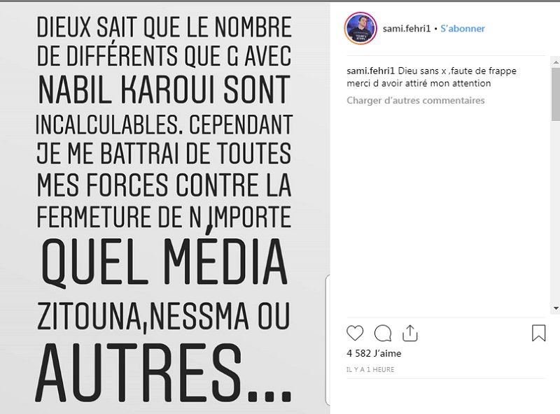 سامي الفهري يعلق على قرار غلق قناة نسمة (صور)