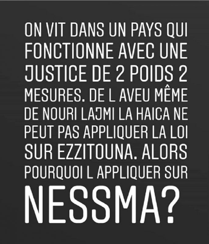 واستغرب الفهري من اعتماد سياسة المكالين في تطبيق القانون وتساءل إذا كانت الهايكا غير قادرة على غلق قناة الزيتونة التلفزية "فلماذا تطبق القانون على قناة نسمة."