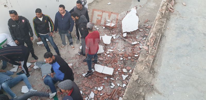 سقوط جدار بجانب قاعة عزيز ميلاد يتسبب في اصابة عدد من أحباء شبيبة القيروان