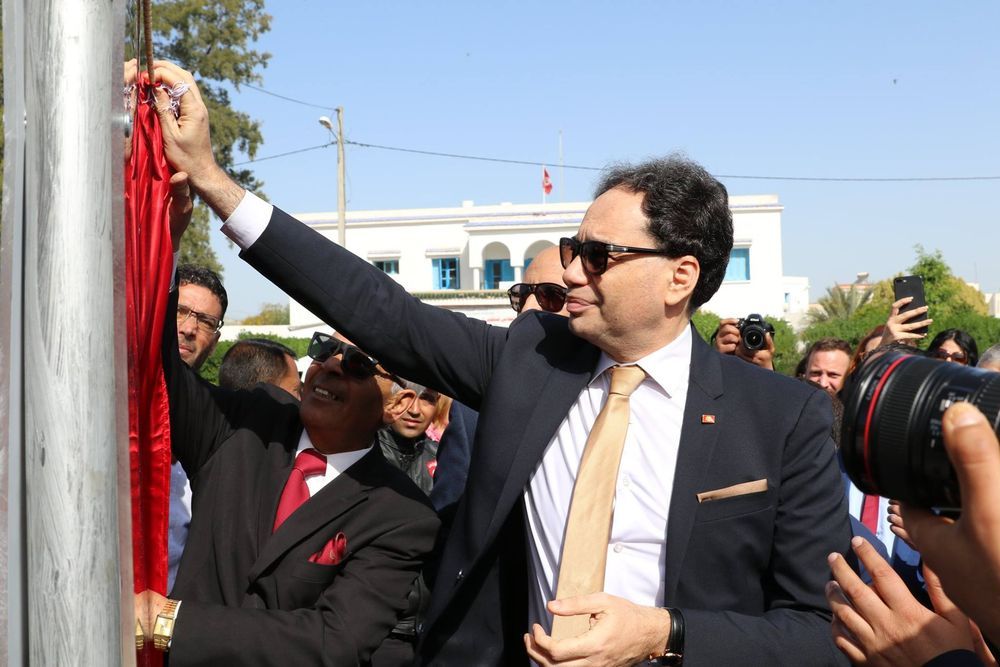 وأشاد الوزير بساحة الفنون التي تحمل اسم المصمم العالمي عز الدين علية معتبرا أن المصمم الراحل يمثّل رمزا للنجاح والقوة والاصرار والطموح.