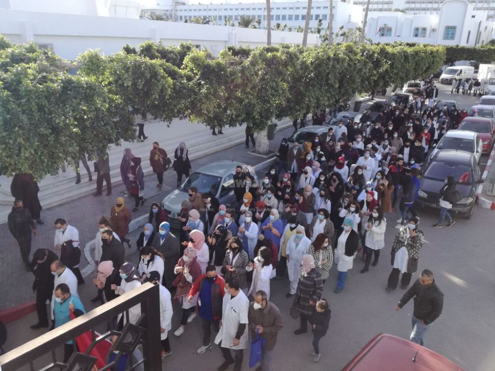 نفذت اليوم الثلاثاء الإطارات الطبية وشبه طبية بسوسة، مسيرة احتجاجية، انطلقت من مستشفى فرحات حشاد وصولا إلى مقر ولاية سوسة، وذلك في إطار يوم الغضب الوطني الذي دعت له عمادة الأطباء.