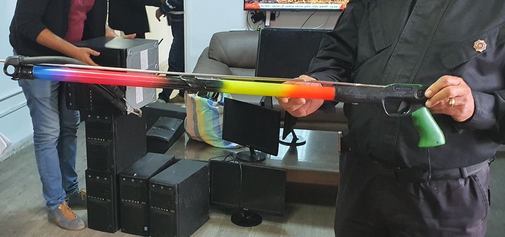 و بتفتيش المكان تم العثور على 15 جهاز كمبيوتر ، اتضح انها على ملك المؤسسة التربوية محل السرقة ، اضافة الى حجز سيف من الحجم الكبير و بندقية قنص بحرية.